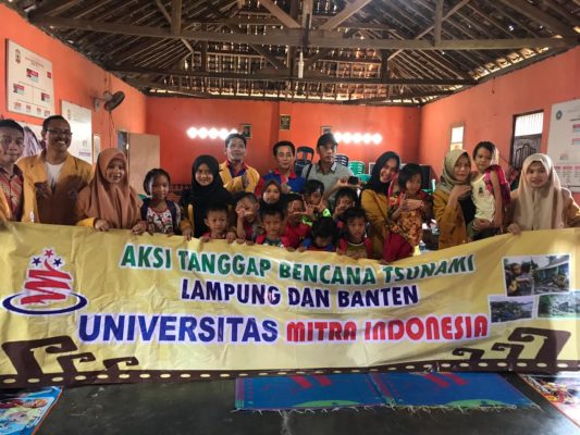 Lampung Selatan (PBO)- Universitas MITRA Indonesia, santuni anak-anak usia sekolah korban tsunami di tiga pos bantuan kecamatan Kalianda dan Rajabasa, Kabupaten Lampung Selatan, Jumat (11/1).
