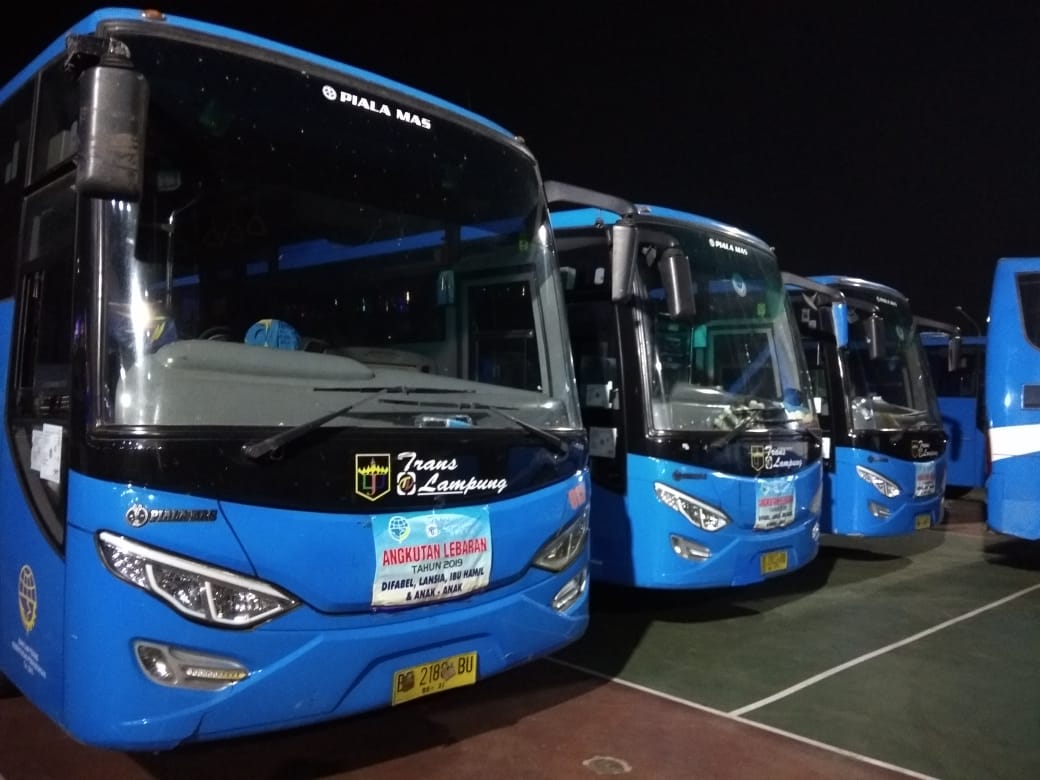 Lampung Selatan (PBO) – Untuk mengurangi penumpukan penumpang diruang tunggu bus, PT. ASDP Indonesia Ferry (persero) Cabang Bakuheni menyiap delapan armada bus Trans Lampung untuk para penumpang arus mudik Lebaran Idul Fitri 1440 H tahun 2019.