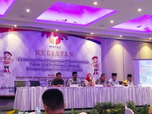 BANDAR LAMPUNG (PENA BERLIAN ONLINE )-Badan Pengawas Pemilu (Bawaslu) Provinsi Lampung,  menggelar kegiatan Eksaminasi dan Ekspose hasil Pengawasan Pemilihan Gubernur dan Wakil Gubernur Lampung Tahun 2018. Acara tersebut dilaksanakan di Sheraton Lampung, pada Jumat, (31/8/2018)