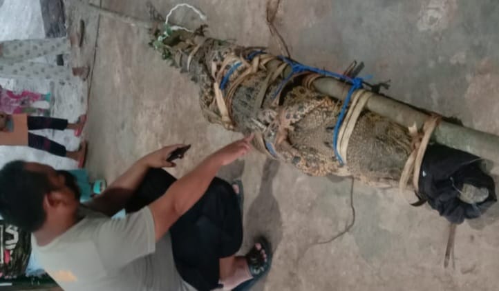 “Dikarenakan buaya akan membahayakan dan untuk keselamatan maka masyarakat bersama sama mengamankan dengan menggunakan seutas tali,” kata Ipda Eko Sujarwo.