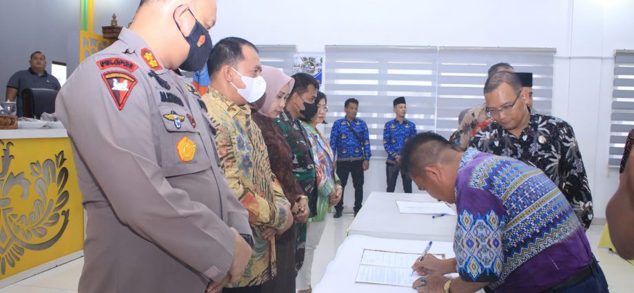 Ketua Panitia Abdi Jaya Pohan menyampaikan tujuan kegiatan hari ini demi suksesnya pelaksanaan Pilkades Serentak di Kabupaten Labuhanbatu tahun 2022 melalui calon kepala desa yang memiliki komitmen bersama untuk menjaga ketertiban, keamanan, serta siap menang siap kalah pada pemungutan suara pada 02 Nopember 2022 mendatang.