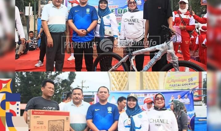 Usai mengikuti senam sehat Bupati Labuhan batu dr. H. Erik Adtrada Ritonga MKM dan Wakil Bupati Labuhan batu Hj. Ellya Rosa Siregar S.Pd, MKM membacakan doorprize kepada masyarkat yang berutung.(DS)