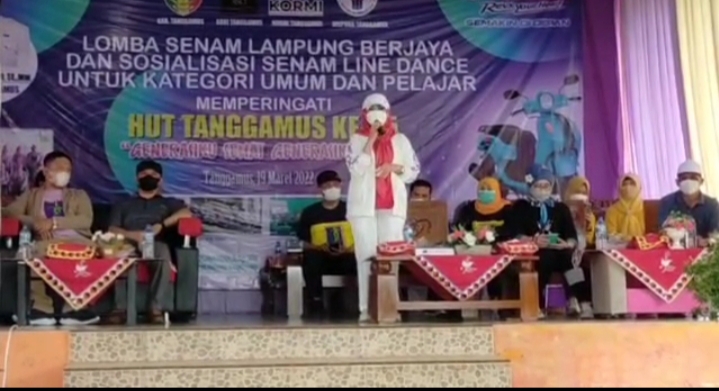 TANGGAMUS, (PBO) – Bupati Hj Dewi Handajani hadiri sekaligus membuka kegiatan Lomba Senam Lampung berjaya. Di lapangan kampus STEBI Kotaagung kabupaten setempat pada Sabtu 19/03/2022.