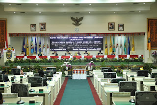WAYKANAN (Pena Berlian Online)- Bupati H. Raden Adipati Surya, S.H.,M.M didampingi Ketua Tim Penggerak PKK Kabupaten Hj. Dessy Afriyanti Adipati menghadiri Acara Pelantikan dan Pengucapan Sumpah/Janji Anggota DPRD Provinsi Lampung Periode 2019/2024 di Ruang Sidang Peripurna DPRD Provinsi Lampung, Senin (02/09/2019).