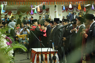 Dilanjutkan dengan pembacaan Surat Keputusan Kementerian Dalam Negeri No 161.18/3824 Tahun 2019 Tentang Peremian Pengangkatan Anggota DPRD Masa Jabatan 2019-2024 kemudian pemanggilan satu persatu Anggota DPRD terpilih untuk memasuki ruangan untuk melakukan Pelantikan dan Pengucapan Sumpah/Janji, Penandatangan serta Penyematan Lencana.