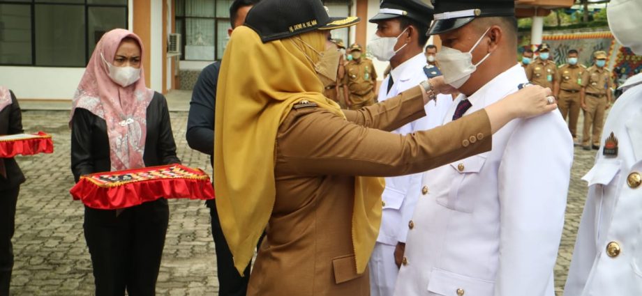 Kotaagung Timur (PBO) — Bupati Tanggamus Hj. Dewi Handajani, melantik 66 orang Penjabat Kepala Pekon (Pj. Kakon) Masa Jabatan Tahun 2022 Kabupaten Tanggamus, di Halaman Kantor Bupati Tanggamus, Selasa (11/1/2022).