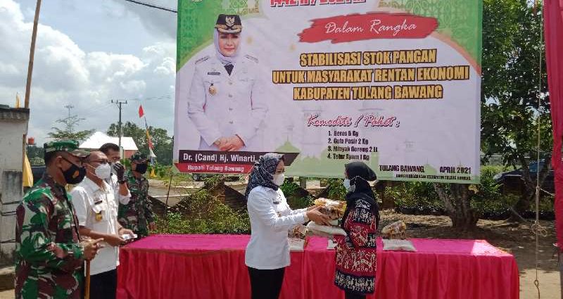 TULANGBAWANG (PBO) – Pemerintah Kabupaten Tulangbawang gelar pasar murah ramadhan dengan mengusung tema dengan semangat BMW saling peduli untuk berbagi, kegiatan digelar di Balai Kampung Ujung Gunung Ilir, Kecamatan Menggala, kabupaten setempat, Rabu (21/04/2021).