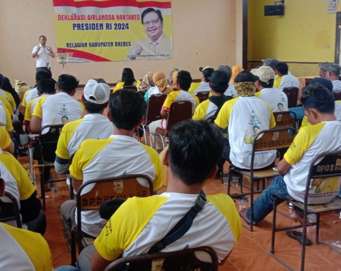 Post Views: 166 Jawa Tengah, (Pena Berlian Online) – Ratusan relawan dan sejumlah simpatisan dan kader Partai Golkar Kabupaten Brebes melakukan deklarasi mengusung Ketua DPP Golkar Airlangga Hartarto sebagai Presiden 2024. Kegiatan yang dilangsungkan di Aula DPD Partai Golkar Kabupaten Brebes juga dihadiri anggota Fraksi Golkar Beni Purnomo, SE. HadirContinue Reading
