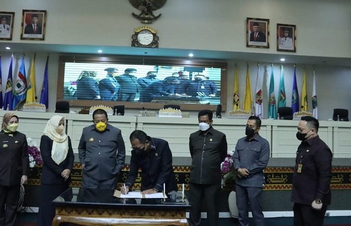 Pimpinan DPRD Lampung Tandatangani Raperda Pertanggungjawaban APBD