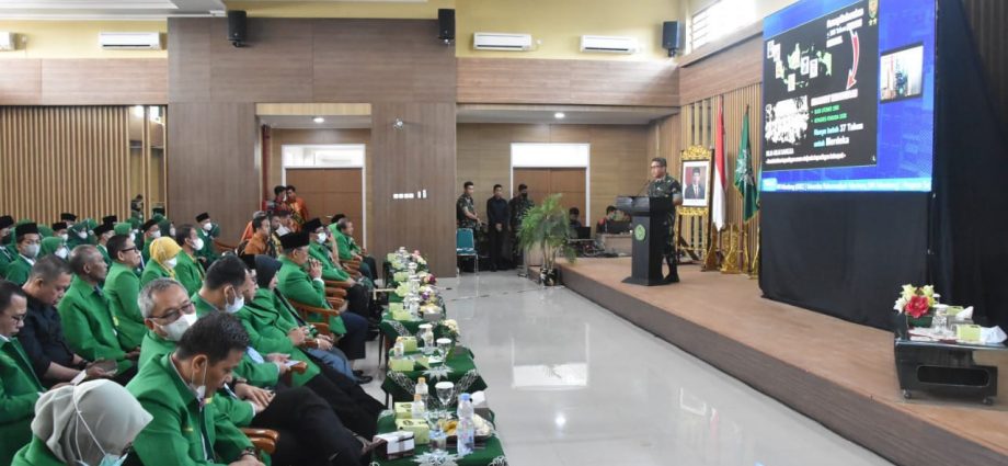 Pemberian Kuliah Umum oleh Pangdam II/Swj terswlebut, dalam rangka kegiatan Pengenalan Kehidupan Kampus bagi Mahasiswa Baru (PK2MB) Universitas Muhammadiyah Palembang TA. 2022/2023.