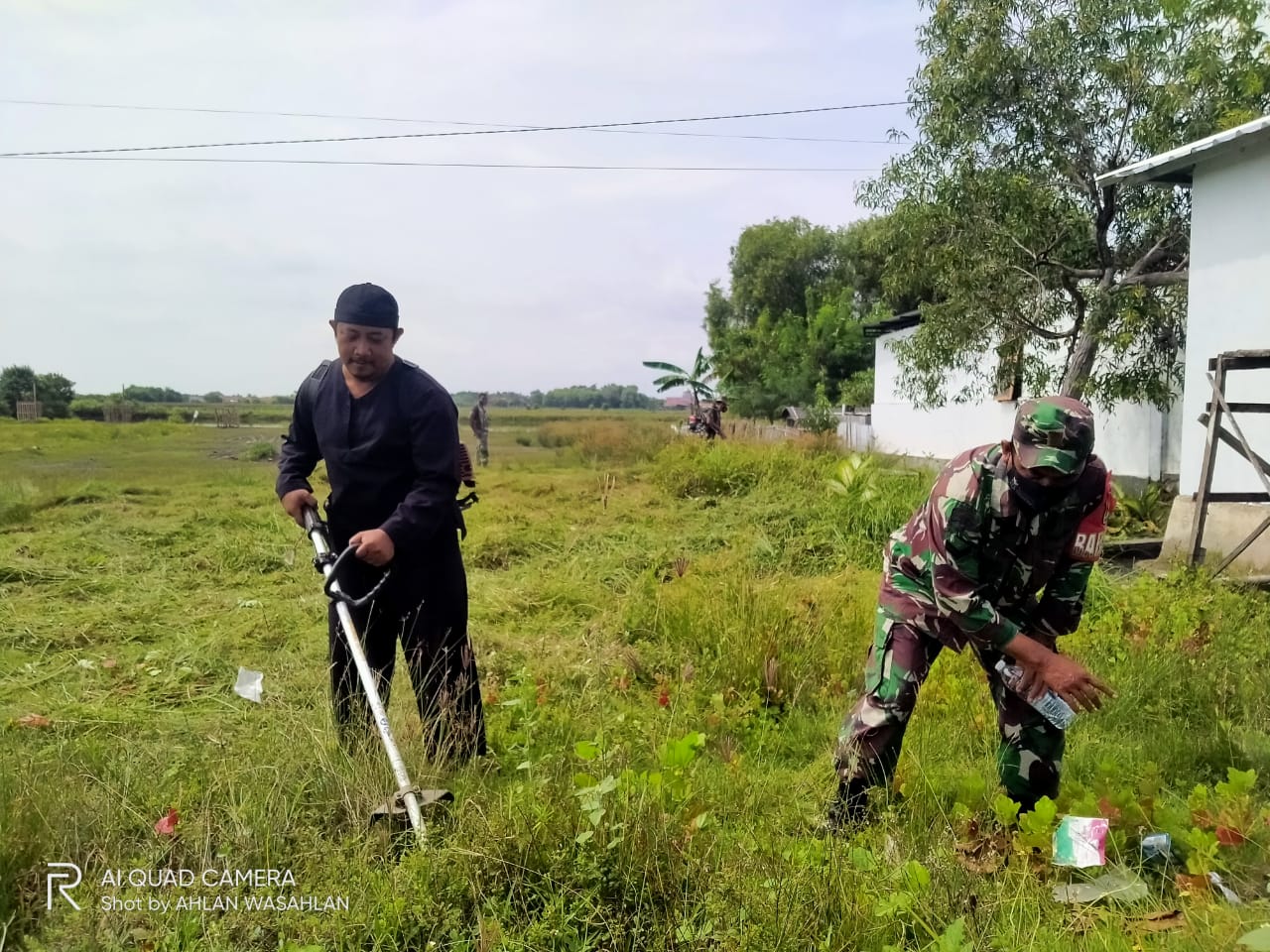 Cirebon, (PBO)- dalam rangka mendukung ketahanan pangan babinsa koramil 2021/Suranengga Kodim 0620/Kab.Cirebon dengan penuh semangat melaksanakan kegiatan karya bakti pembersihan rumput liar seluas 400 m2 untuk membuka Lahan Demplot pertanian yang akan ditanami tanaman murbay, bertempat di Desa bungko lor, Kecamatan Kapetakan, Kab. Cirebon Jawa Barat, Jum’at (25/02/2022).