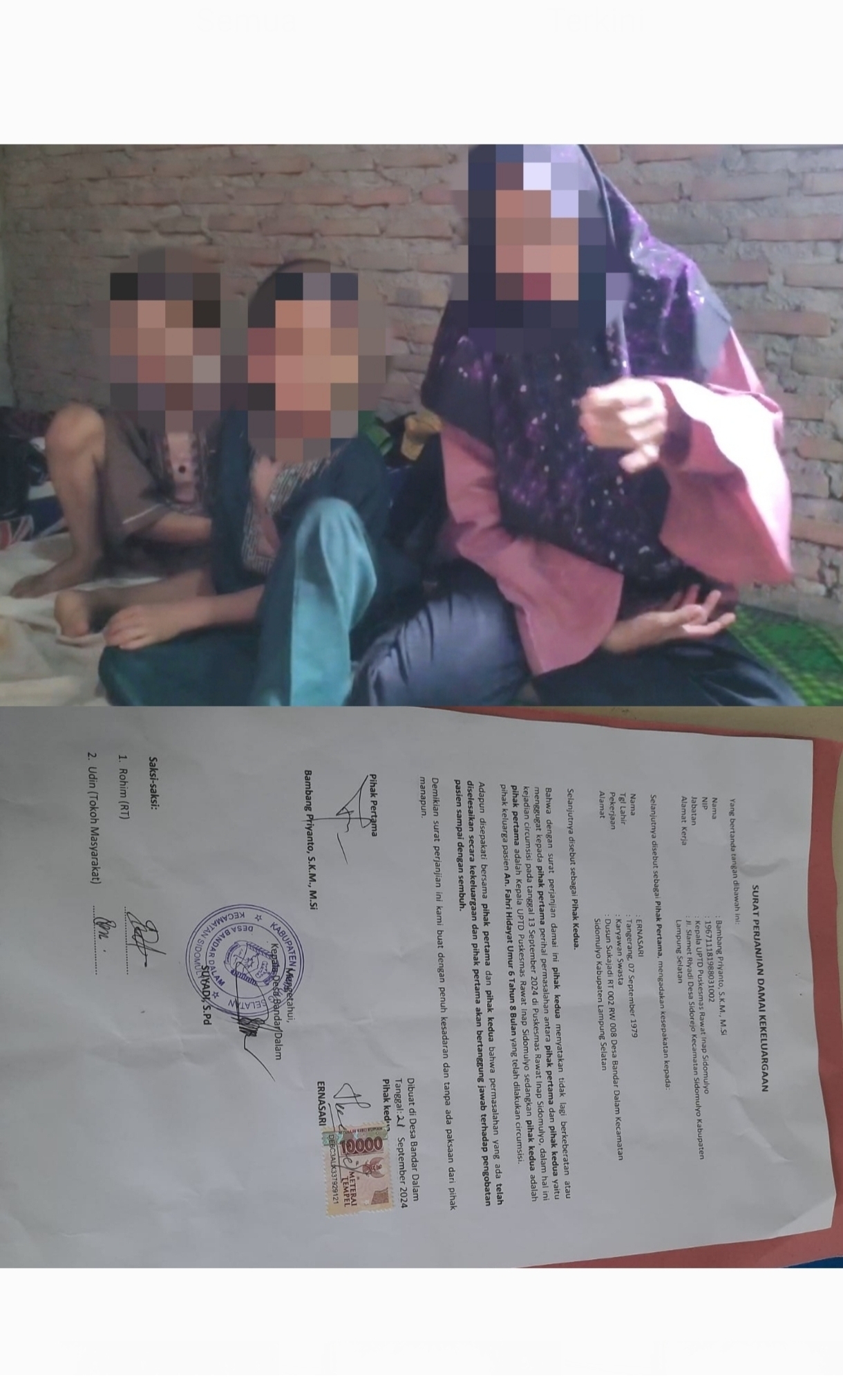 Diduga Ada Upaya Penekanan Damai Pada Pihak Keluarga Terkait Korban Malapraktik Sunat Gratis di UPT Puskesmas Sidomulyo