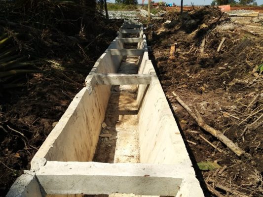 “Pada sistem pengerjaan talang saluran irigasi dengan menggunakan sistem ferocement maka bila ketebalan dinding dan lantai pada perencanaan hanya 3 cm maka yang perlu diingat adalah saluran talang ferocemen yang difungsikan sebagai jalur saluran sekunder irigasi harus diingat bahwa saluran talang ferocemen terletak dialam bebas yang dimana bisa ketimpa pohon yang rubuh atau tertabrak hewan seperti sapi atau kambing, dan dengan ketebalan hanya 3 cm sungguh beresiko bila tidak dilindungi dengan pagar pengaman seperti pagar kawat berduri yang dibentangkan ditiang besi siku yang diletakkan disisi kiri atau kanan atau diberi pelindung dengan pagar hidup dengan bambu,”beber narasumber.
