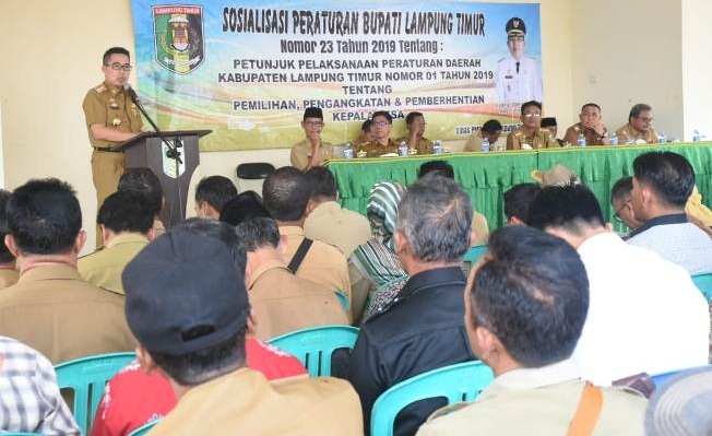 Sekampung Udik (Pena Berlian Online)– Dinas Pemberdayaan Masyarakat Desa (DPMD) Kabupaten Lampung Timur menyelenggarakan sosialisasi pemilihan kepala desa (pilkades) serentak, Selasa (20/8/2019).