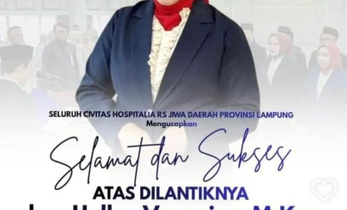 Bandar Lampung – Ketua DPW PWDPI LAMPUNG MR Tambuse menyampaikan ucapan selamat dan sukses atas dilantiknya Drg. Hellen Veranica, M.Kes sebagai Direktur RS Jiwa Daerah Provinsi Lampung.