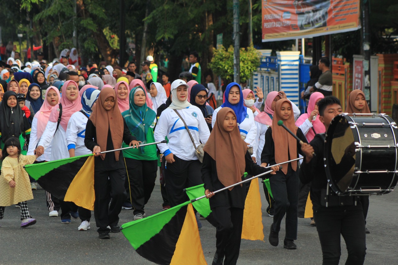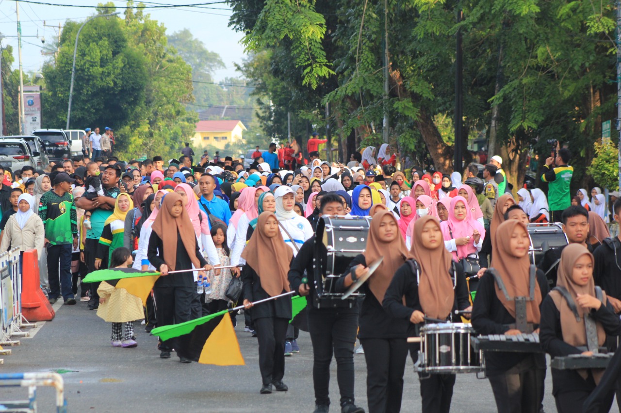 Pada kesempatan yang sama, Kepala Kantor Kemenag Kabupaten Labuhanbatu Dr. H. Asbin Pasaribu, MA., mengatakan bahea gerak jalan ini juga serentak dilaksanakan di seluruh Indonesia, dan di Labuhanbatu estimasi 3000 lebih peserta.