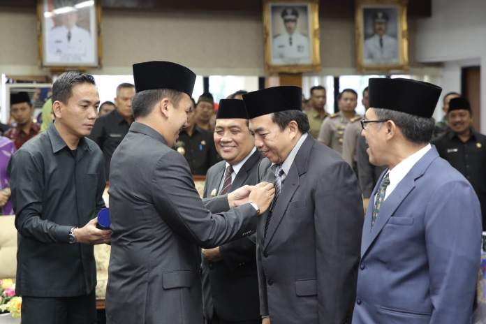 LAMPUNG-Gubernur Lampung Ridho Ficardo menyerahkan Surat Keputusan (SK) SK Menteri Dalam Negeri kepada tiga pelaksana tugas (Plt) Bupati.