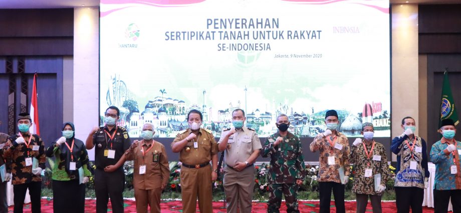 Bandar Lampung , (Pena Berlian Online)- Gubernur Lampung, Arinal Djunaidi, menyerahkan sertifikat hak atas tanah oleh Presiden RI (secara virtual), bertempat di Ballroom Hotel Emersia, Senin (9/11).