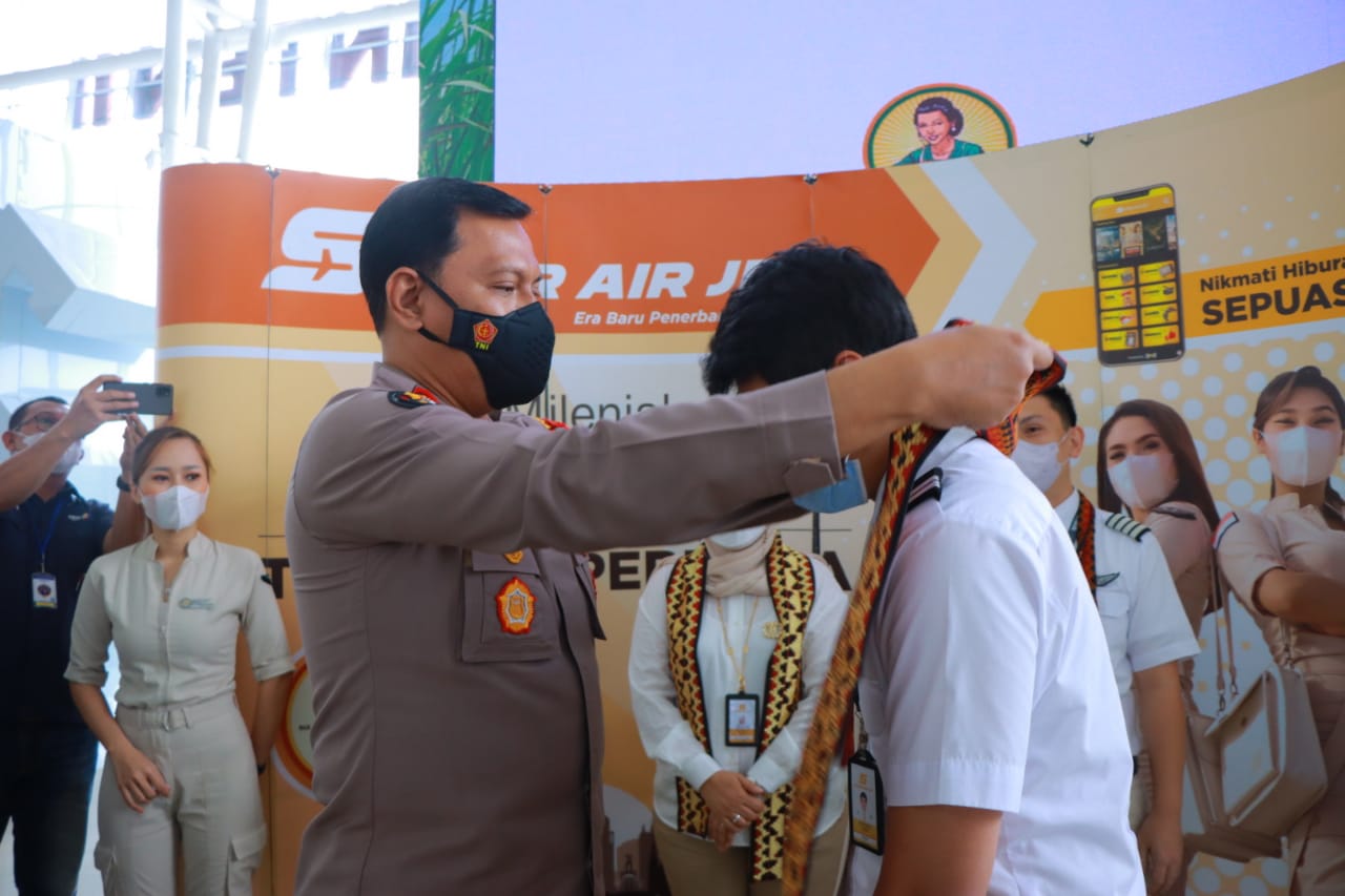 “Kita menyaksikan bersama-sama bahwa hari ini adalah penerbangan pesawat dari Lion Grup yakni Super Air Jet,” katanya.