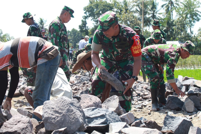 Hilangkan Margin TNI-Rakyat, Dansatgas TMMD 105 Banyuwangi Angkat Batu