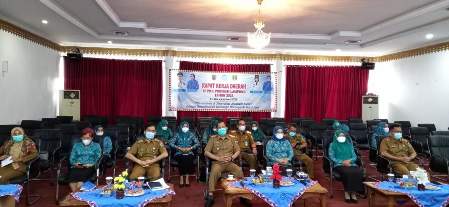 Ketua TP PKK Tanggamus Sri Nilawati Syafi’i menyampaikan pada hari ini kami dari jajaran TP PKK Tanggamus mengikuti Rapat Kerja Daerah dari Provinsi, disitu pihaknya membahas pokok- pokok hasil Rakernas yang ke sembilan PKK tahun 2021.