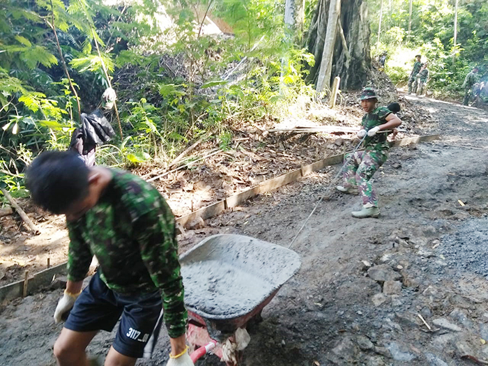 “kerja kita keras, karena medan berat. Hasilnya memang untuk kepentingan masyarakat bersama. Rabat jalan ini memang kodnisnya menurun tajam, sekitar 45 derajat, “ katanya. Selasa (23/7). (Pendim)