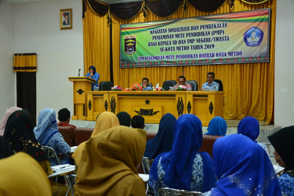 Metro (Pena Berlian Online) – Dinas Pendidikan dan Kebudayaan Kota Metro adakan Kegiatan Sosialisasi dan Pembekalan Penjaminan Mutu Pendidikan (PMP) bagi Kepala SD dan SMP Negeri/Swasta Se-Kota Metro Tahun 2019, Selasa (17/09/19).