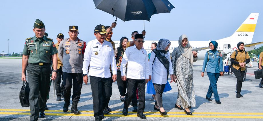Setibanya di Bandara Kualanamu, Deliserdang, turut menyambut kedatangan Wapres RI diantaranya Pj Gubernur Sumut Mayjen TNI (Purn) Hassanudin dan Pangdam I Bukit Barisan Mayjen TNI Mochammad Hasan.