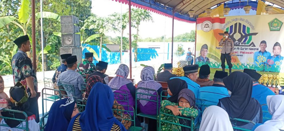 “Saya mengajak semua kita yang hadir disini untuk selalu mengembangkan nilai-nilai Al-Qur’an dalam kehidupan kita sehari-hari,”kata Kapolsek Palasah Iptu Dalyanto saat sambutannya.