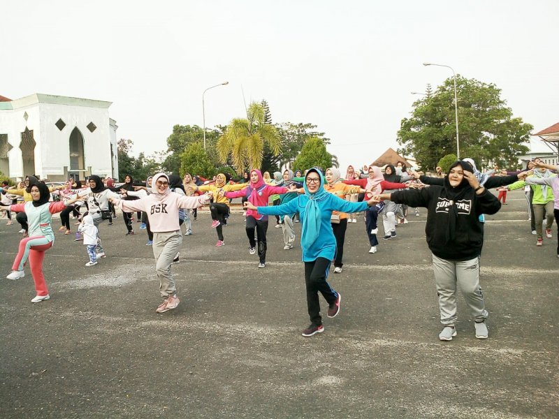 Ketua Dan Wakil Ketua TP PKK Senam Germas Bersama Ibu-Ibu Kelurahan Blambangan Umpu