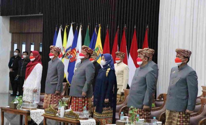 Bandar Lampung – Gubernur Lampung Arinal Djunaidi bersama Forkopimda Provinsi Lampung mengikuti Upacara Penurunan Bendera secara virtual yang disiarkan langsung dari Istana Merdeka Jakarta, bertempat di Mahan Agung, Rabu, (17/08/2022).