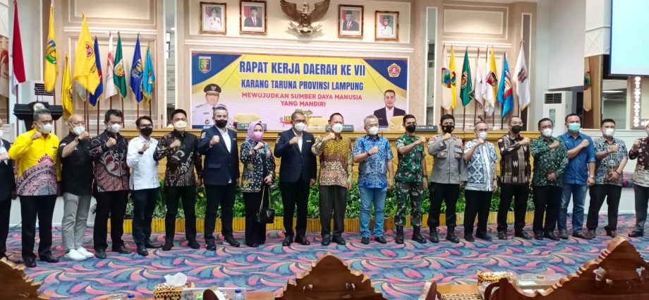 Bandar Lampung (Pena Berlian Online)-Karang Taruna Provinsi Lampung menggelar Rapat Kerja Daerah (Rekerda) Ke VII, yang dilaksanakan di Balai Keratun Pemprov Lampung, Sabtu (14/5/2022).