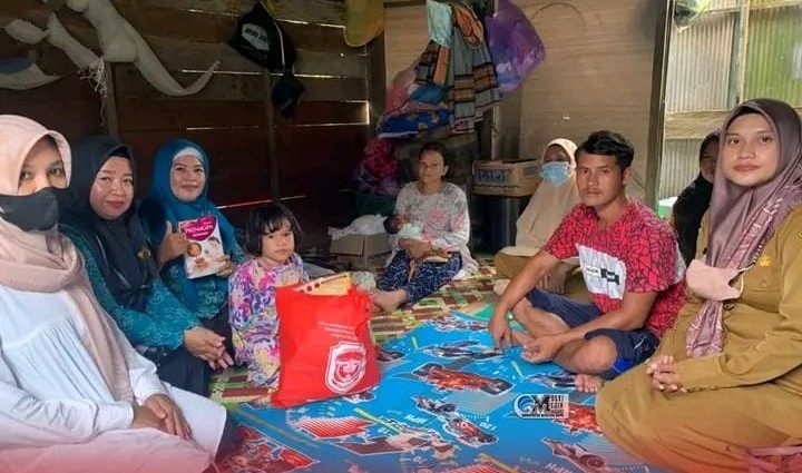 Murung Raya (Pena Berlian Online) – Ketua Tim Penggerak Pemberdayaan dan Kesejahteraan Keluarga (TP-PKK) Kecamatan Murung Hernani Fahriman dan rombongan terkait dari Kecamatan Murung, Kelurahan Beriwit serta tenaga kesehatan setempat mengunjungi salah satu warga Kelurahan Puruk Cahu Seberang yang kurang mampu, memiliki bayi baru lahir bergejala stunting, Senin (7/11/2022).