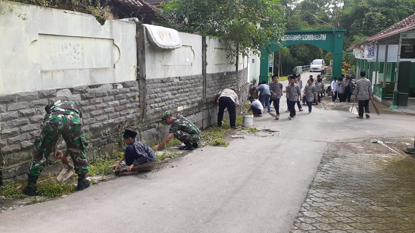 Palimanan, (PBO) – Personil Koramil 0620-16/Gempol Kodim 0620/Kab Cirebon bersama sama Babinkamtibmas, Aparat Desa, Pengasuh dan para Santri melaksanakan kegiatan Karya Bakti di Komplek Pondok Pesantren Al – Jauhariyah Desa Balerante, Kecamatan Palimanan, Kabupaten Cirebon Jum’at 25 Februari 2022.