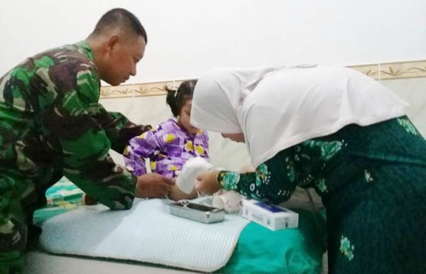 Pelda Hendrat Ruswandi menuturkan, kegiatan anjangsana ini hanya silahturahmi dan sekedar memberikan perawatan terhadap Siti Badriah. Lebih lanjut Pelda Hendrat yang didampingi Istrinya Ny.Dwi Istutik, Amd. Kep. membantu mengganti verban dan merawat luka bekas Amputasi. “Saya hanya bisa berdoa untuk saudari Siti Badriah agar segera pulih dan bisa bermain lagi seperti anak-anak lainnya” ujarnya Hendrat.