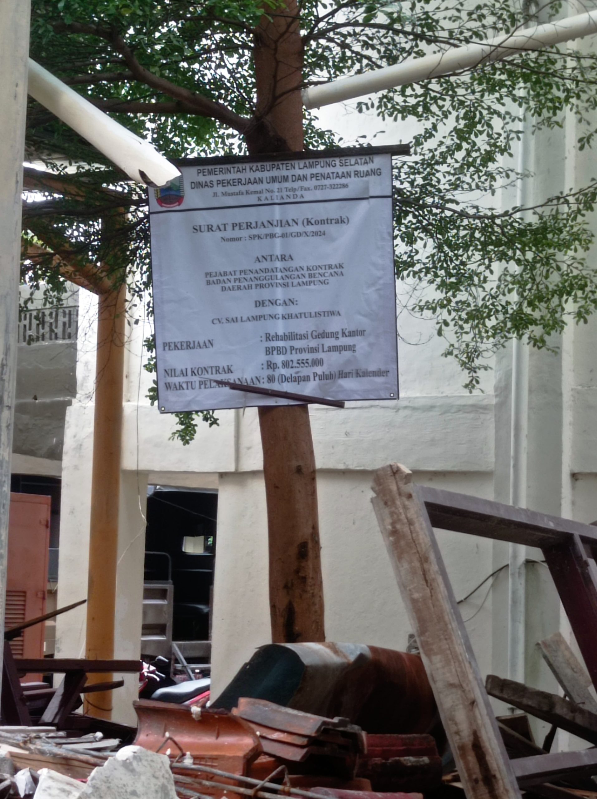 Bandar Lampung – Proyek rehabilitasi gedung Badan Penanggulangan Bencana Daerah Provinsi Lampung (BPBD) senilai Rp 802.555.000 kini menjadi sorotan publik. Lembaga Swadaya Masyarakat Hati Nusantara Tak’Akan Mati (HANTAM) Provinsi Lampung mengungkap sejumlah temuan yang diduga mengarah pada praktik korupsi, tumpang tindih kewenangan, serta pelanggaran administrasi keuangan daerah.