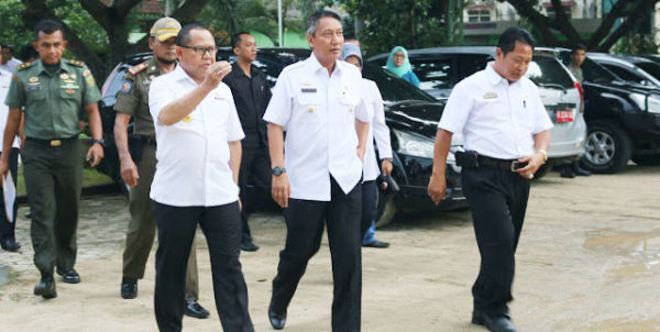 Tampak hadir menemani Pjs. Gubernur Lampung dalam tinjauan lokasi, Kepala Biro Humas dan Protokol Setda Provinsi Lampung Bayana, Kepala Dinas Pendidikan dan Kebudayaan Provinsi Lampung Sulpakar, Kepala Satuan Pol PP Provinsi Lampung Jayadi, dan Danrem 043/Gatam Hadi Basuki. (**)