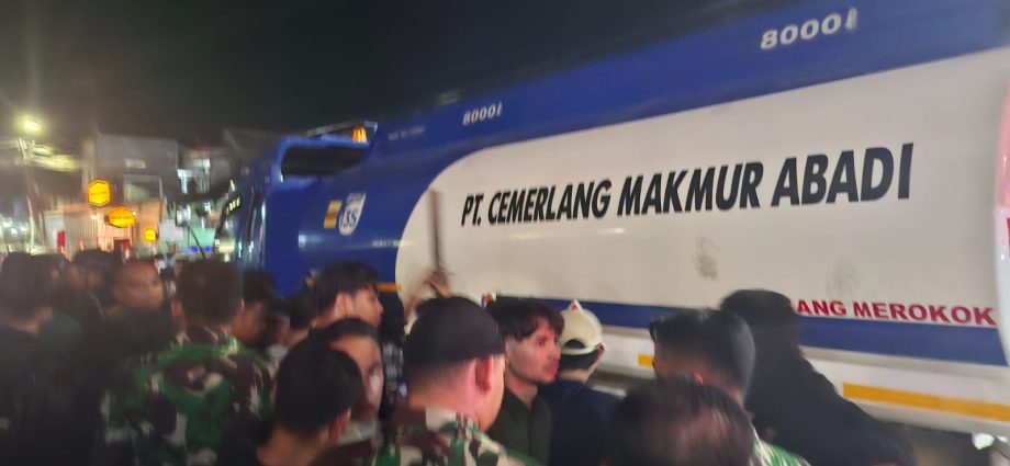 penaberlian.com, Bandar Lampung – Mobil tangki biru putih PT. Cemerlang Makmur Abadi menabrak seorang pengendara motor di Jalan RE Martadinata, Kel. Pesawahan, Kec. Teluk Betung Selatan, Bandar Lampung, Sabtu (30/11/2024) sekitar pukul 22.00 wib.