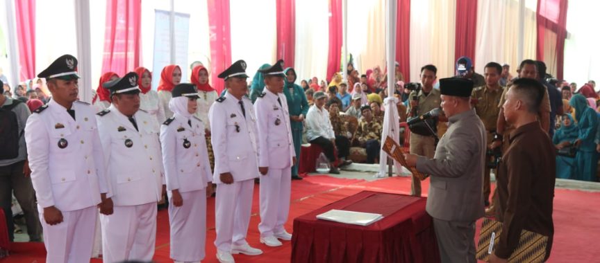 Pelantikan dan pengambilan sumpah jabatan lima Kades dari tiga kecamatan yang berbeda itu, dipusatkan di Desa Lebung Sari, Kecamatan Merbau Mataram, Selasa (24/9/2019).
