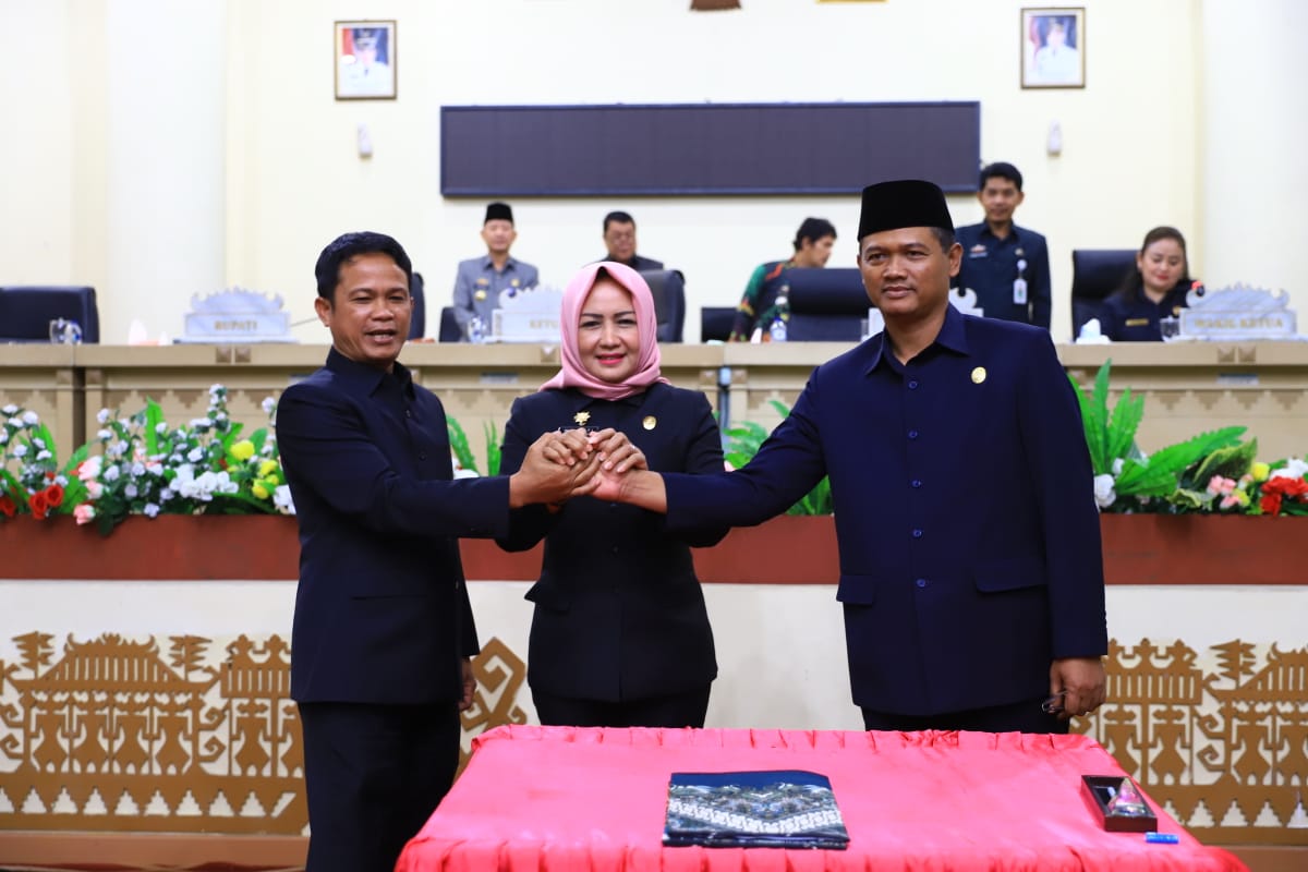 “Saya sangat bangga, kerja keras kita Eksekutif – Legislatif, dalam kerangka regulasi aturan bisa terlaksana dengan baik, terbukti hari ini kita menyepakati, dengan langkah, dengan tugas dan fungsi kita masing-masing, kita terus bisa berbuat untuk rakyat Tulangbawang,” tutur Bunda Winarti.