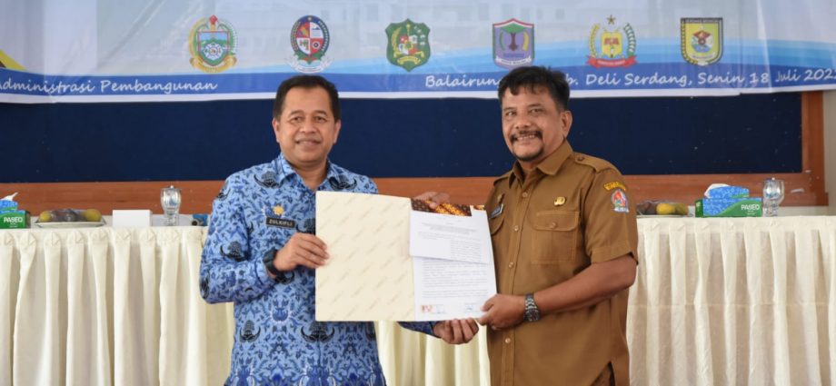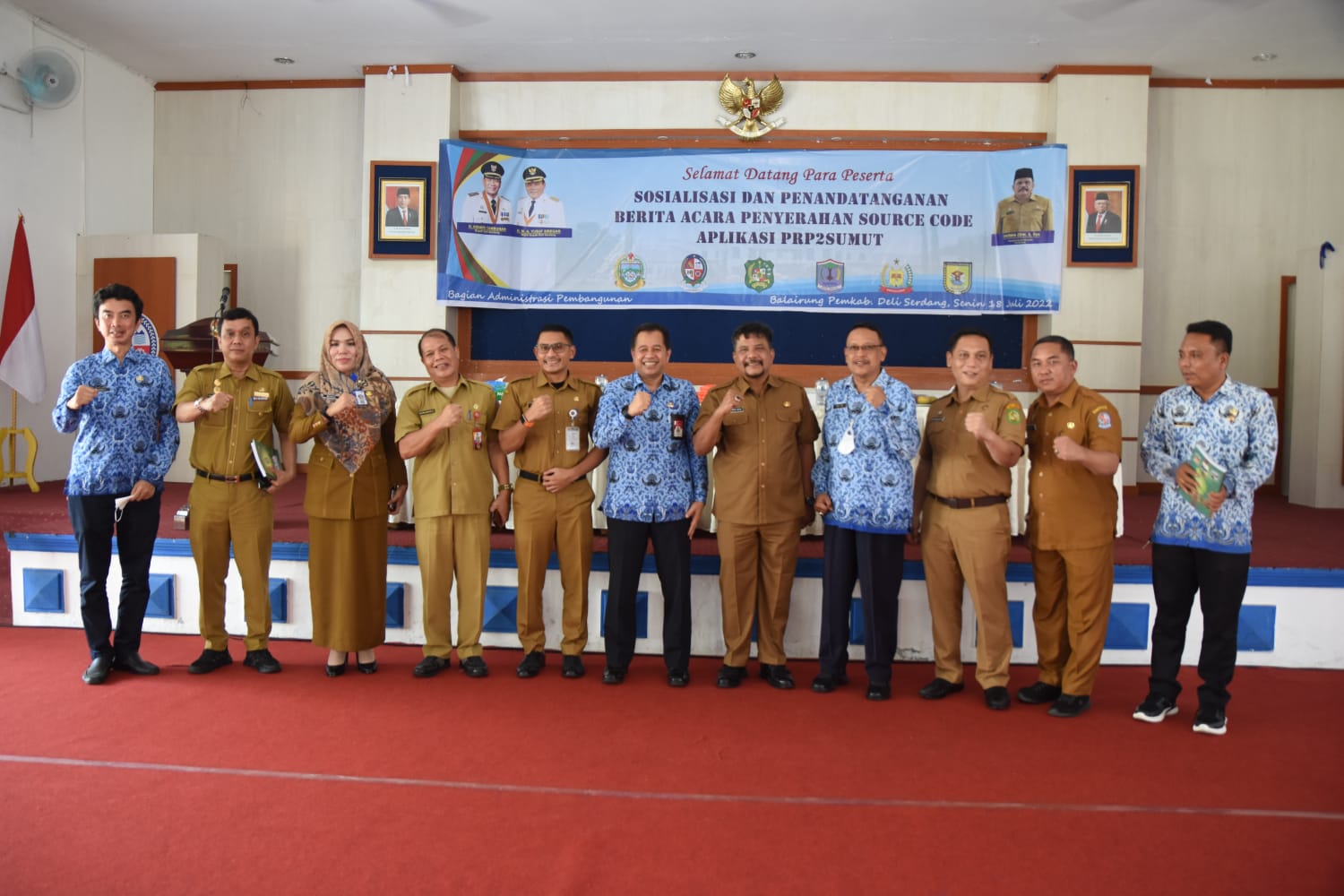 Sumatera Utara, (Pena Berlian Online) – Sekretaris Daerah (Sekda) Kabupaten Deli Serdang, Darwin Zein, S.Sos, menghadiri Penandatanganan Berita Acara Serah Terima Source Code Aplikasi Progres Report Pengendalian Pembangunan Sumatera Utara (PRP2 Sumut) di Balairung Pemkab Deli Serdang, Senin (18/7/2022).