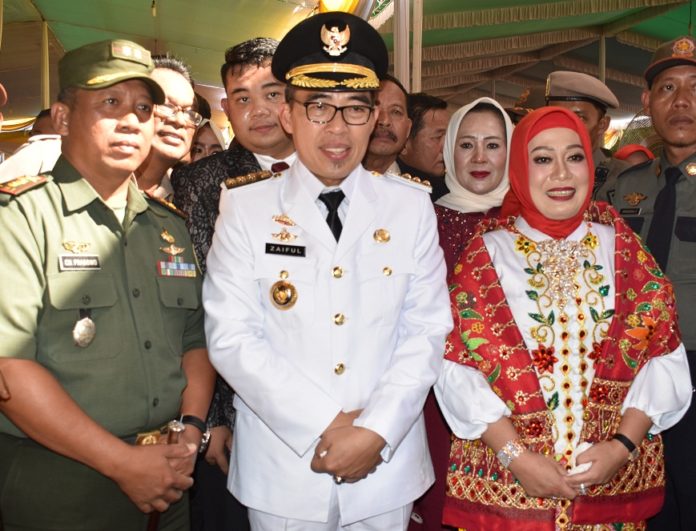 Sukadana (Pena Berlian  Online) – Resmi di lantik sebagai Bupati Lampung Timur Zaiful Bokhari, ST.MM di arak pawai Budaya di depan Rumah Dinas Bupati, Sukadana, Kamis Siang (18/7/2019).