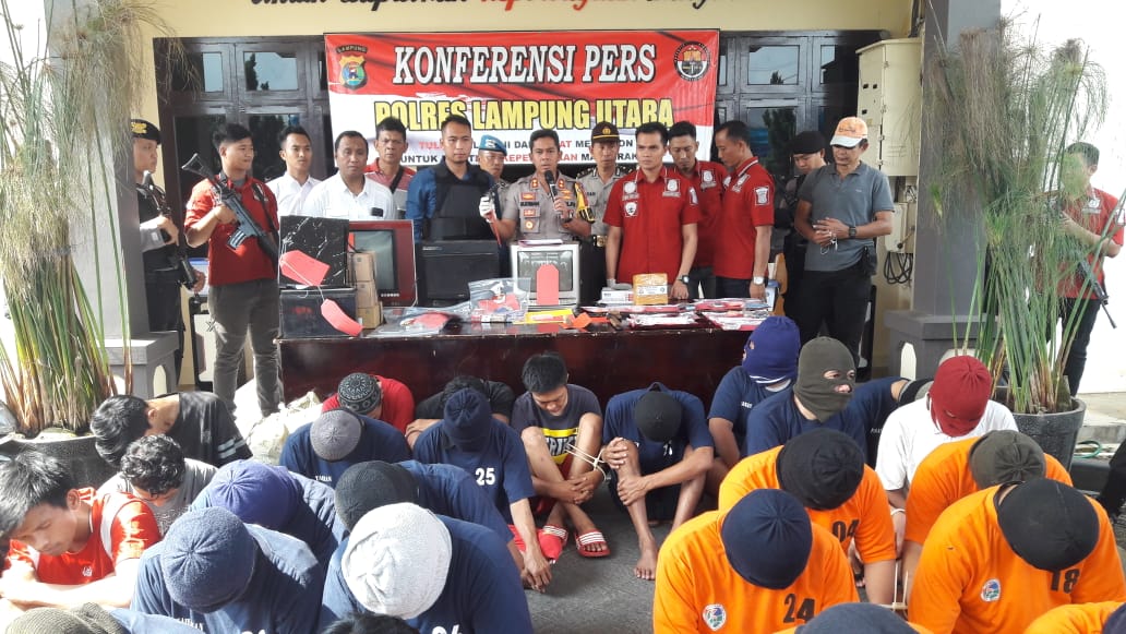 Lampung Utara (PBO) – Kegiatan Kepolisian Yang Ditingkatkan (KKYD) dalam rangka menciptakan situasi kamtibmas yang aman dan kondusif di wilayah Kabupaten Lampung Utara menjelang Hari Raya Idul Fitri 1440 H tahun 2019. Polres Lampung Utara berhasil mengungkap 43 Kasus Tindak Pidana dengan Pelaku berjumlah 53 orang selama periode tanggal 01 s/d 25 Mei 2019.
