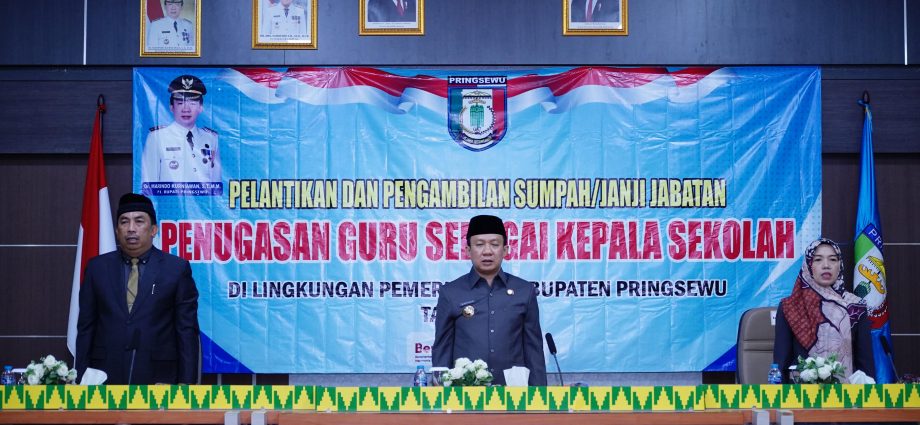 “Adapun pelantikan dan sumpah/janji kepala sekolah di lingkungan Pemerintah Kabupaten Pringsewu ini didasarkan pada Surat Keputusan Bupati No.821.2/2060/B.04/2024 tentang Pengangkatan dan Pemindahan Guru yang diberi tugas sebagai Kepala Sekolah di lingkungan Pemerintah Kabupaten Pringsewu,” katanya.