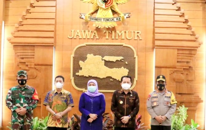 (Pena Berlian Online), – Pjs Gubernur Sulawesi Utara, Agus Fatoni, bersama Forkopimda Sulut diterima Gubernur Jawa Timur Khofifah Indar Parawansa di Gedung Grahadi, Surabaya, Minggu (8/11/2020). Pjs Gubernur Sulut didampingi Kapolda Sulut, Kajati dan Danrem. Sedangkan Gubernur Jawa Timur didampingi Kepala Organisasi Perangkat Daerah (OPD).
