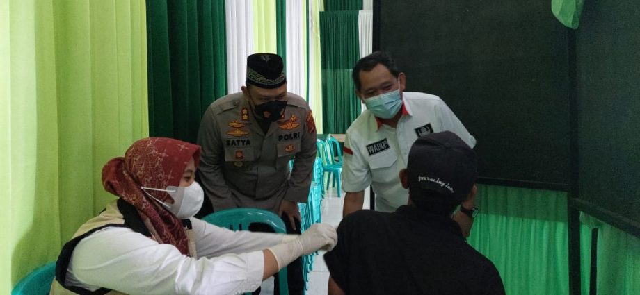Tanggamus (Pena Berlian Online) – Dalam mendukung gerakan 1 juta vaksinasi booster PBNU, Polri, dan Kementerian Agama. Polres Tanggamus menggelar vaksinasi serentak di sejumlah titik wilayah hukumnya, Kamis (21/4/22).