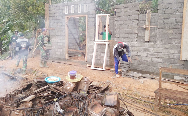 Trenggalek (Pena Berlian Online) – Satgas TMMD ke 105 Kodim Trenggalek tetap semangat membangun rumah ibu Boinem (55) penerima bantuan bedah Rumah Tidak Layak Huni (RTLH) RT 26 RW 08 Dusun Nitri Desa Sumurup yang saat ini sampai dengan proses pemasangan kusen.