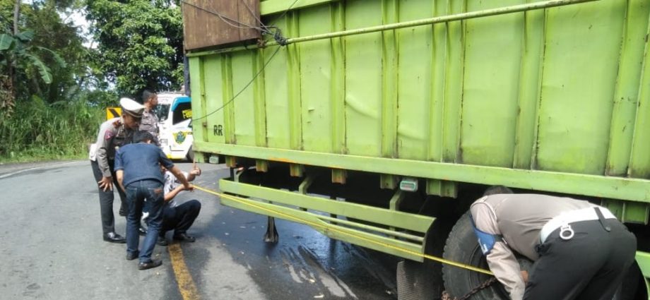 Tanggamus (Pena Berlian online) – Polres Tanggamus Polda Lampung bersama Dinas Perhubungan (Dishub) Tanggamus melaksanakan identifikasi terkait truk fuso melintang yang menutup Jalan Lintas Barat (Jalinbar) Sumatera, Pekon Sedayu, Kecamatan Semaka, Kabupaten Tanggamus.