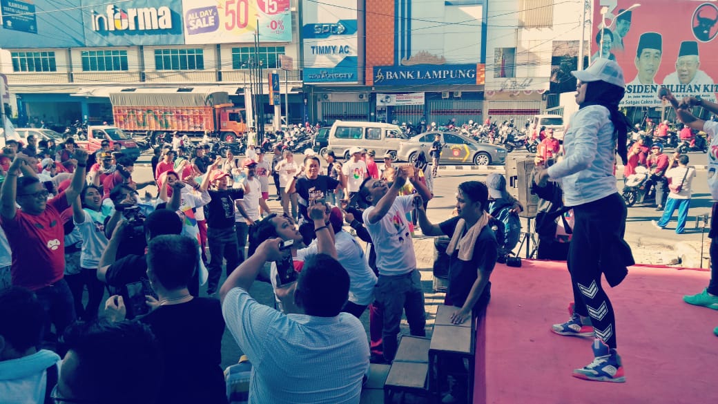Even kreatif bertema Rakyat Sehat Indonesia Hebat, yang rutin digelar salah satu relawan pemenangan calon presiden dan wakil presiden 01 tiap Minggu pagi satu bulan terakhir di depan sekretariatnya, Jalan Sudirman 3C, sepelemparan batu dari Tugu Adipura, Enggal, Bandarlampung itu, hari ini ‘petjah’ juga.