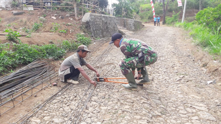 Trenggalek (Pena Berlian Online) – Proses program fisik TMMD Reg 105 Kodim Trenggalek di titik Masjid Miftaqul Ulum turut RT. 18, RW. 05 Dusun Kalitelu, Desa Dompyong, Kecamatan Bendungan, Kabupaten Trenggalek masih berlangsung.